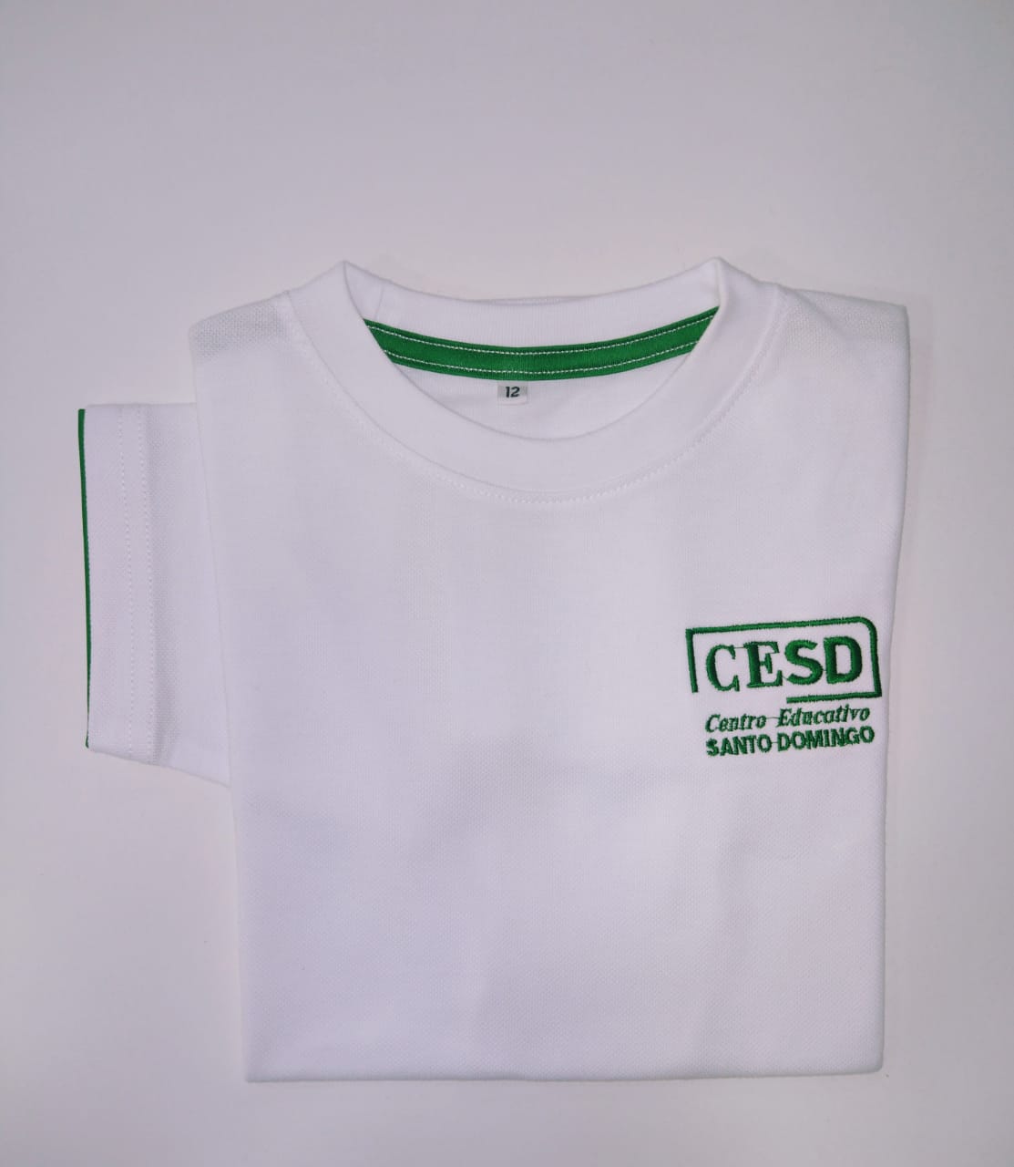 Remera piqué blanco mangas cortas – Centro Educativo Santo Domingo – Secundario – Gimnasia -NUEVO-